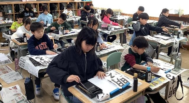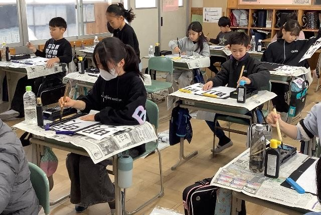 4年生 書き初め会の様子 1月8日