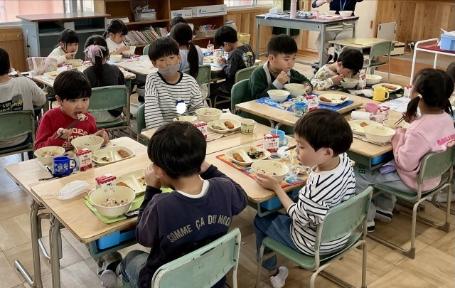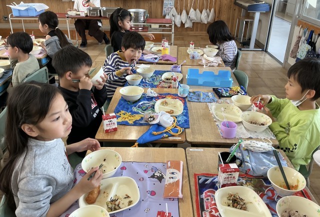 14日(火)から給食が始まりました。特に1年生は、小学校初めての給食です。「おいしい。」「赤飯大好き。」など楽しく会食する様子が見られました。