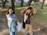あさがおが大きくなり、つるも出てきました。そこで、さらに大きく育つようにするために支柱を立てました。