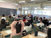 総合的な学習の時間では、「手話」について学びました。講師の方から、耳が聞こえない人とどのようにコミュニケーションを取ったらよいのか、お話していただきました。自分の名前を手話で表す方法や、「こんにちは...