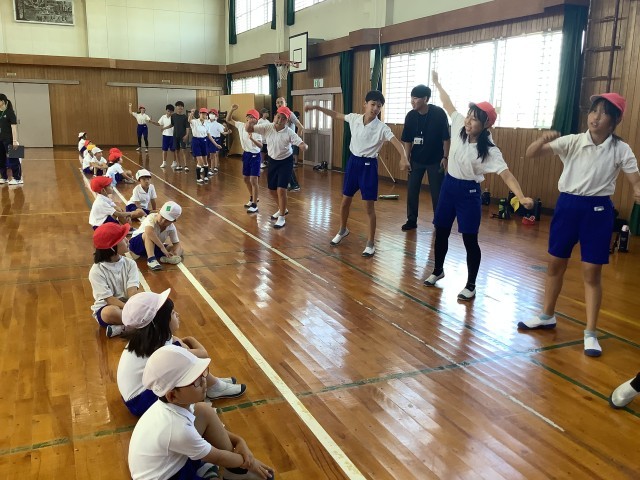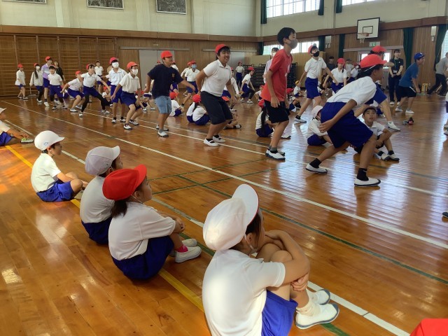 全校で踊るどっこいしょの練習をペア学年で行いました。