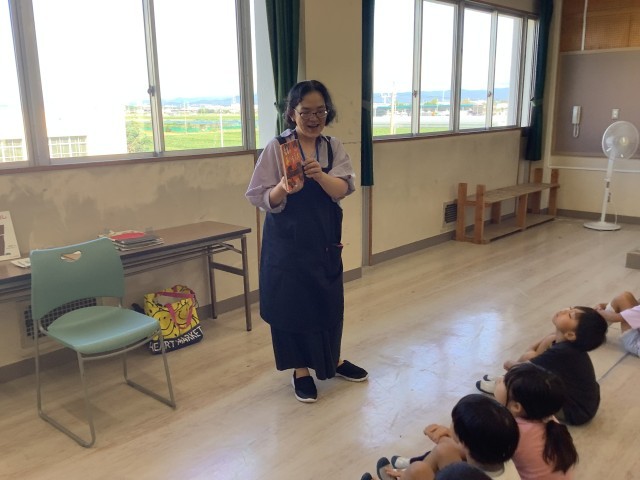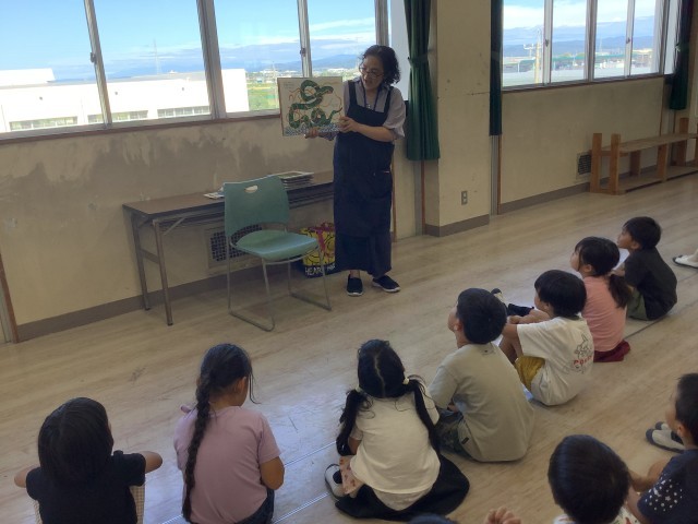 1年生の国語科に「1年生の本だな」の単元があります。学校司書の畔柳さんに、1年生に紹介されている本を紹介していただき読み聞かせもしていただきました。