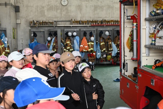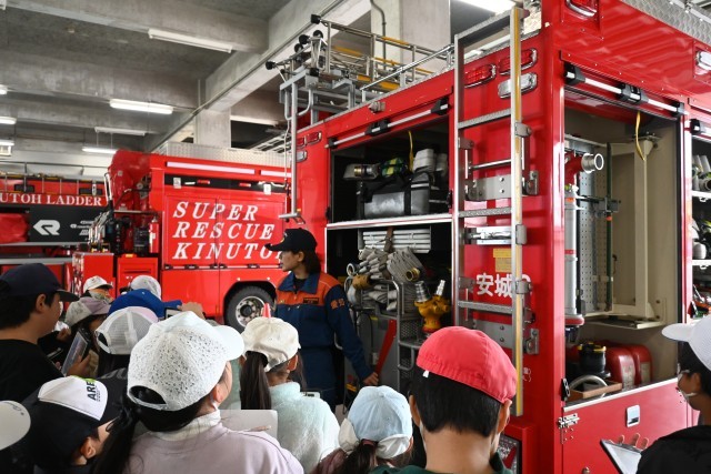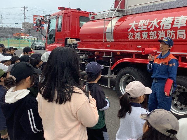 社会科で安城消防署の見学に行きました。消防士さんの話を真剣に聞き、火事の恐ろしさや消防車、消火器の使い方などを学びました。「消防士さんはすごい。火事にならないように料理のときや火を使うときに気を付けたい。」と振り返っていました。