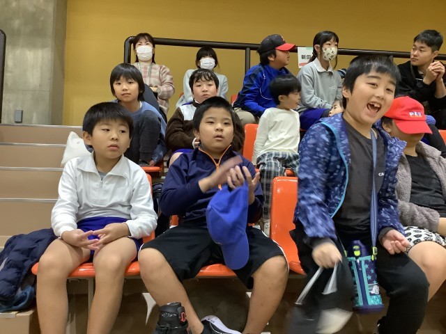 フェンシングとオブスタクルを見学しました。フェンシングは、選手の素早い動きに、「すごい。」「がんばれ。」「かっこいいね。」と応援していました。オブスタクルは、ゴールまでのタイムを競う選手の勢いに圧倒されているようでした。選手に手を振ってもらい、みんなとても嬉しそうでした。