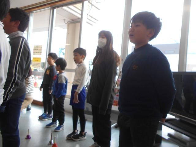 中部福祉センターで開かれた、ふらっとふれあいタイムにひまわり組が出演しました。学習発表会でも披露するハンドベルと、学校で練習していた歌を披露しました。中部福祉センターに来ていた地域のおじいさん、おばあさんに聞いていただき、拍手をもらいました。出演後、「ありがとう。」と言われ、清々しい表情をしていました。