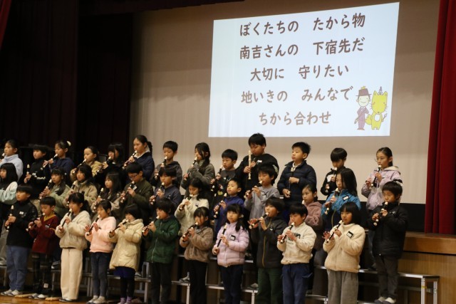 総合的な学習の時間で取り組んできたまちの宝物について発表しました。一年間学んできたことや自分が頑張ったことをお家の人に知ってもらおうと、大きな声でゆっくりはっきり伝える練習をしてきました。「今までの練習で一番上手に言えた」と振り返るなど、どの子もこれまでの練習の成果を発揮することができました。