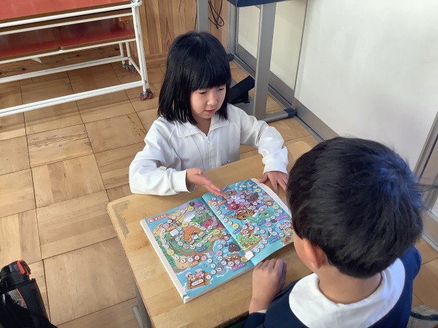 新1年生との交流会がありました。小学校での出来事を教えてあげたり、鍵盤ハーモニカできらきら星を演奏したり、一緒にすごろくで遊んだりしました。いつも一番下の学年だという思いがあるのですが、小さな子に親切に教えてあげたり、手をつないで連れて行ったりする姿を見て大きな成長を感じました。振り返りで、去年の自分の姿を思い出したとあったり、大きくなったと思ったと感じたり、小さい子をお世話して嬉しかったと話す子どもがいました。