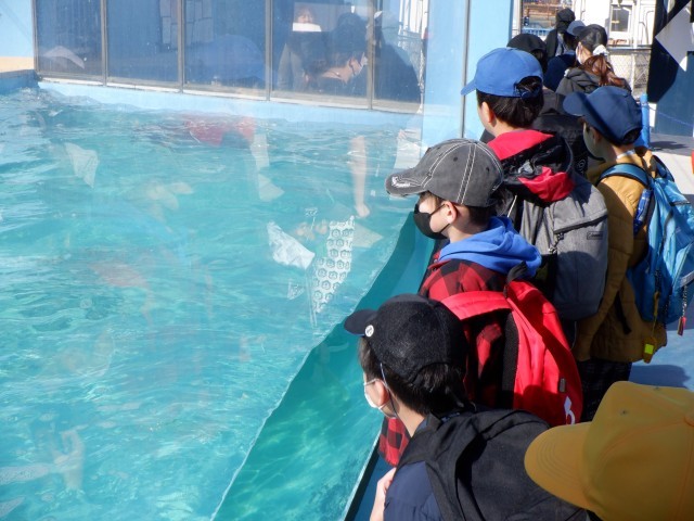 ひまわり組の6年生おわかれ遠足に行きました。リニューアルされた蒲郡の竹島水族館で、限られたお金の中で、魚にえさやりをしたり、がちゃがちゃをしたりして楽しみました。