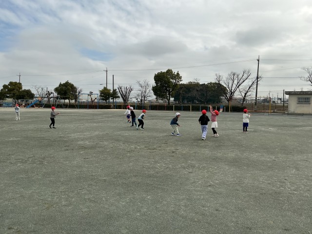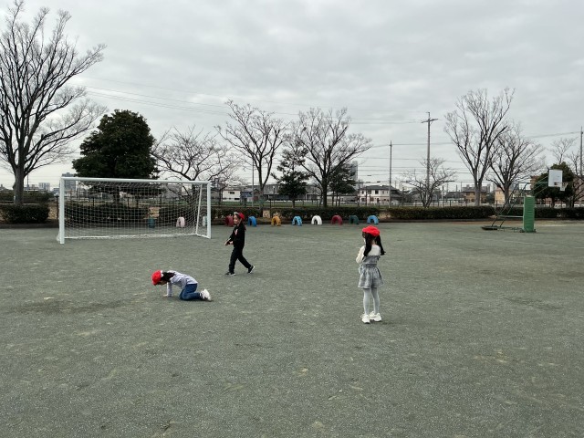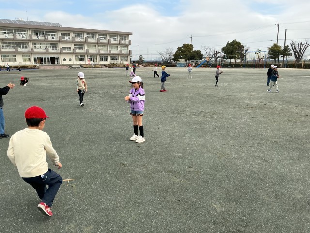 竹とんぼを回します。勢いよく回しながら空に向かって放ちます。