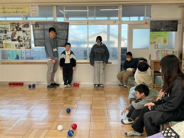ボッチャ大会をしたり、在校生から手紙と手作りの花束渡しをしたりしてありがとうの気持ちを伝えました。