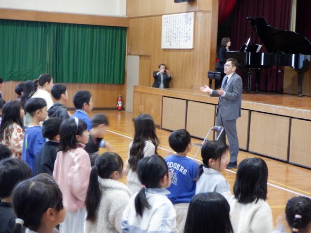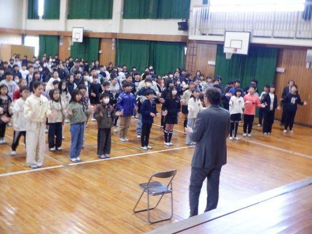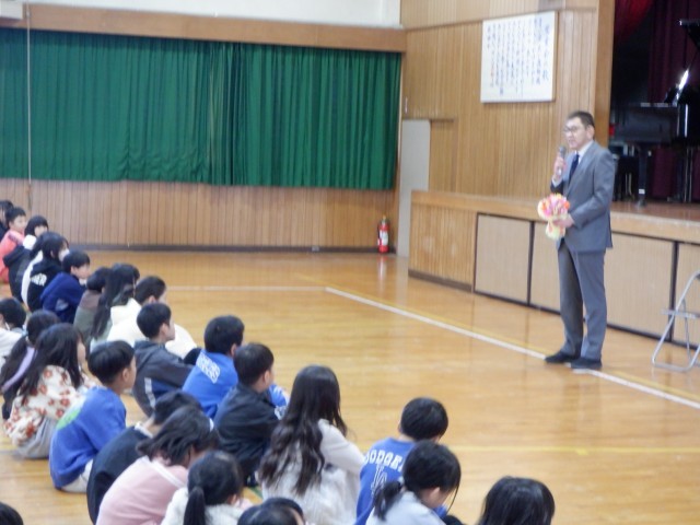 今年度で退職される校長先生に3月18日には6年生が、本日は1~5年生が感謝の気持ちをこめて会を行いました。学級で撮っておいたビデオメッセージや歌「また会える日まで」のプレゼント、手作りの花束、6年生からは卒業証書が渡されました。