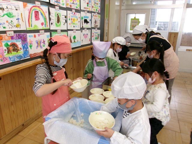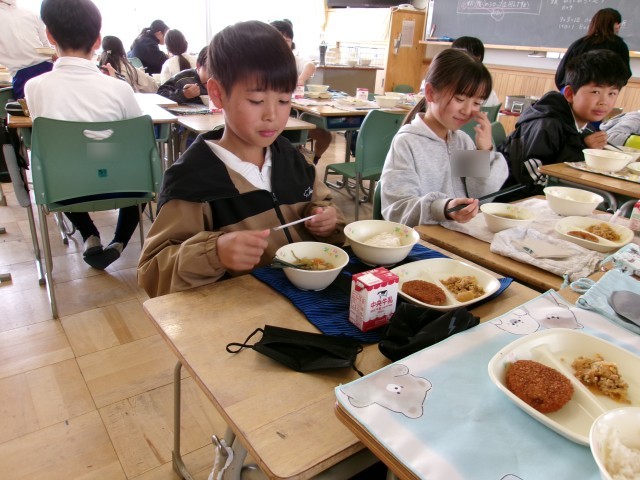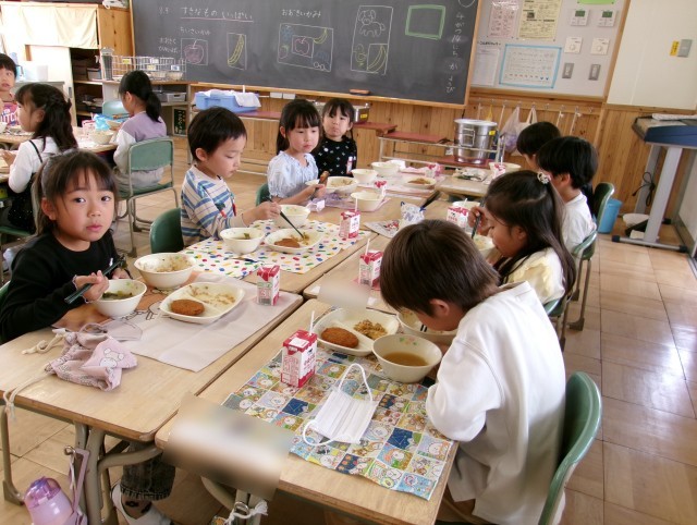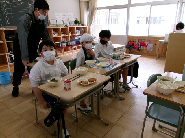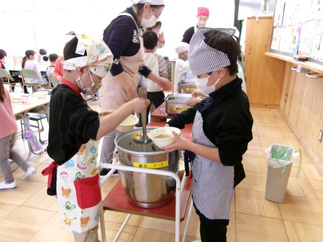 1年生の子たちも上手に配ぜんしたり、食べたりしていました。