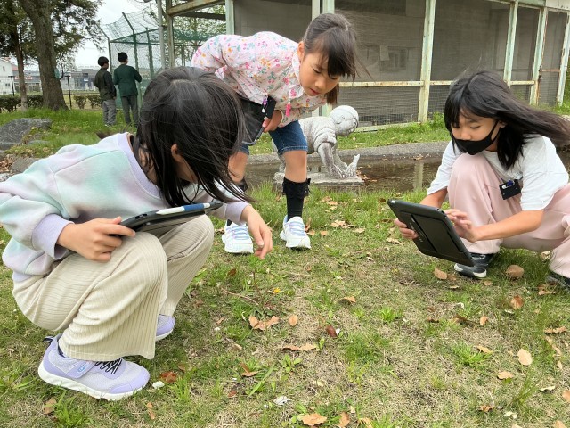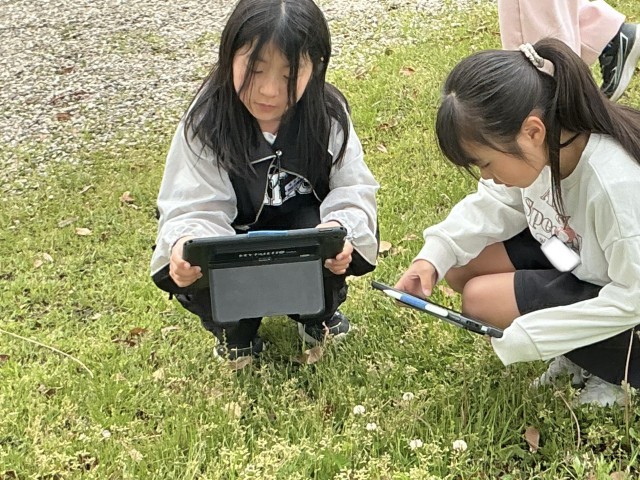 理科の授業で新田の森に行き、春の植物や生き物を探しました。一年を通してどのような変化があるか、学んでいきます。