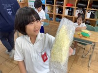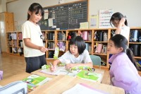 遠足で訪れた場所を1年生に紹介するために、グループになって相談をしました。