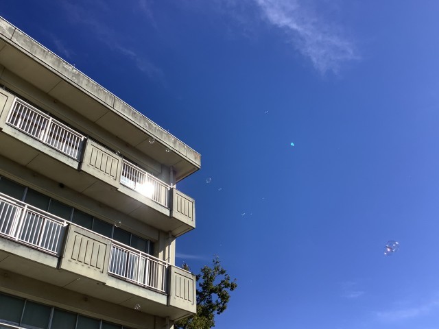 大きなシャボン玉や校舎より高く上がったシャボン玉に歓声が起こりました。