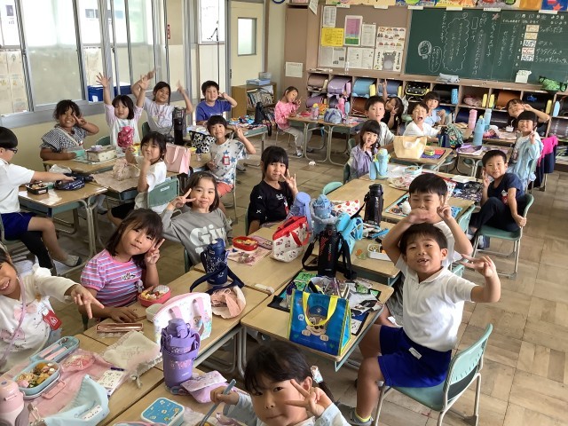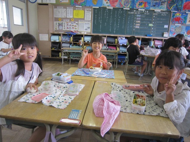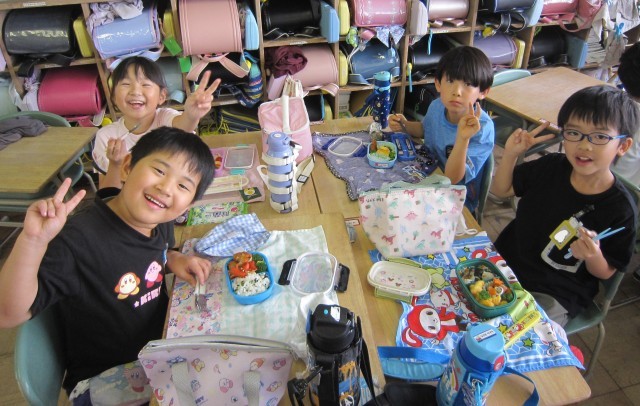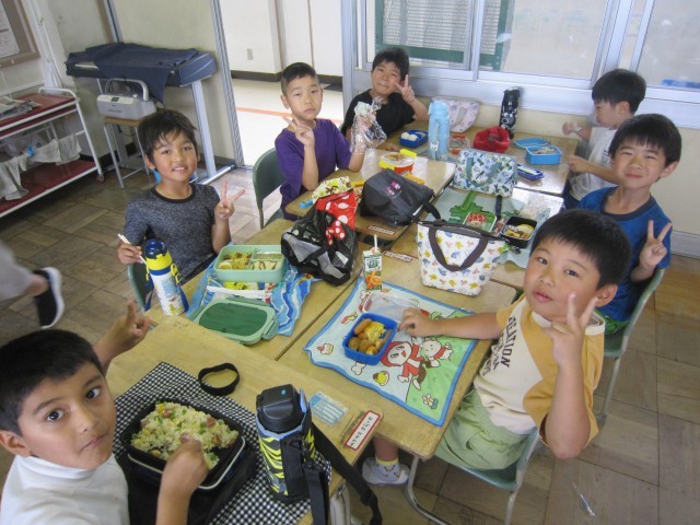 2日に無事に遠足へ行けたので、予備日の今日は、教室でお弁当を食べました。