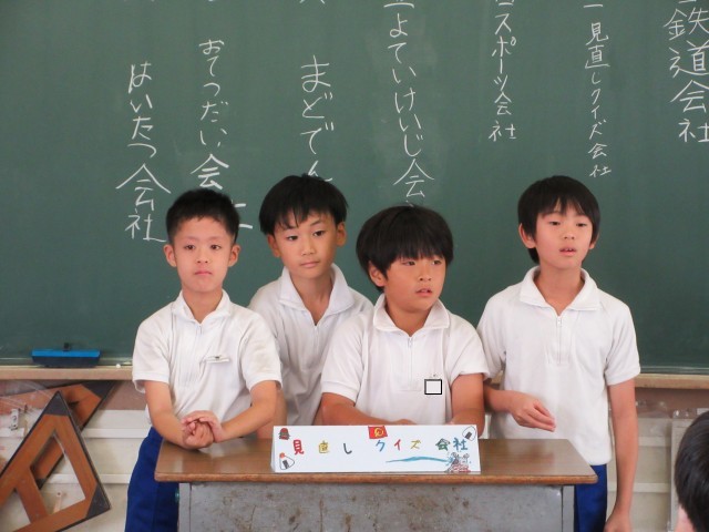 9月から始めた会社活動の振り返りとして、株主総会を行いました。学級のためにできることをそれぞれの会社で考え、実行してきたことをみんなに発表しました。振り返ってみると、活動に成果を感じている会社がたくさんありました。また、9月の取り組みを反省し、10月からの取り組みに意欲を高めている会社もありました。自分たちの活動を自分たちで振り返ることは大切ですね。10月の取り組みもとても楽しみです。