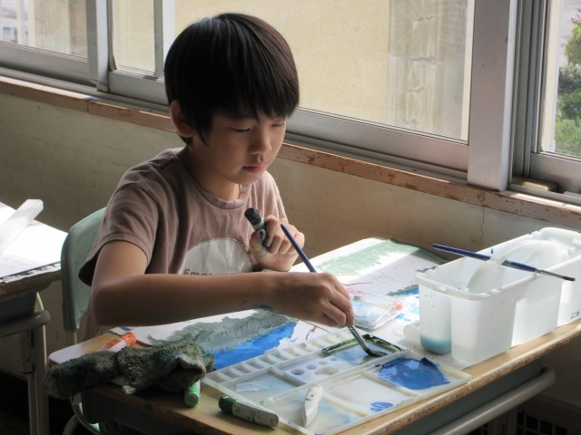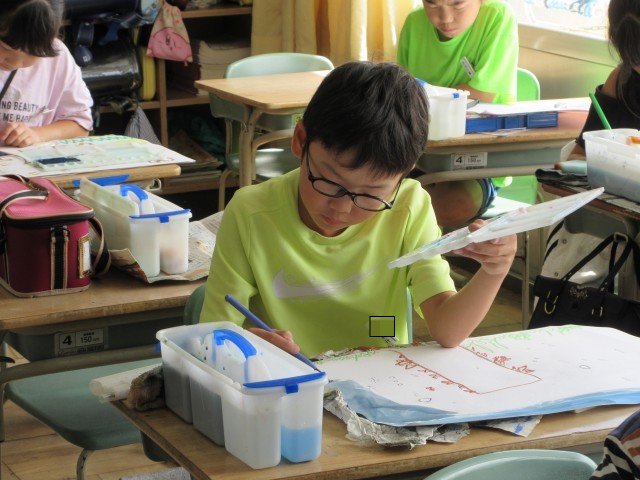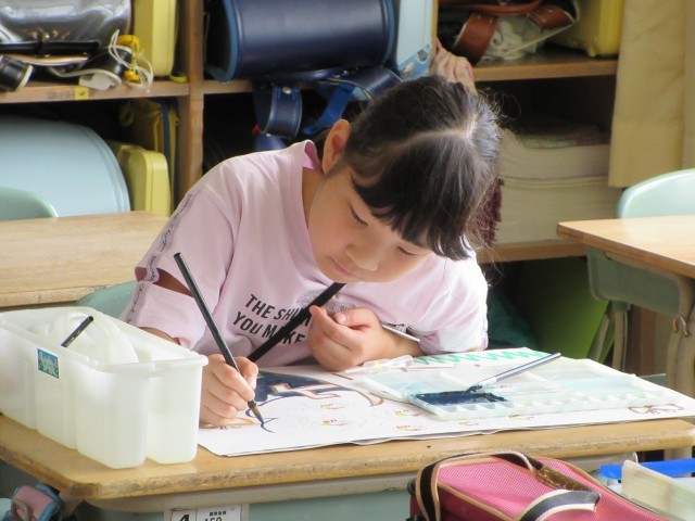 図画工作の学習で行った「読書感想画」が完成しました。自分が一番心に残った場面をみんな工夫しながら、思い思いに絵で表現することができました。
