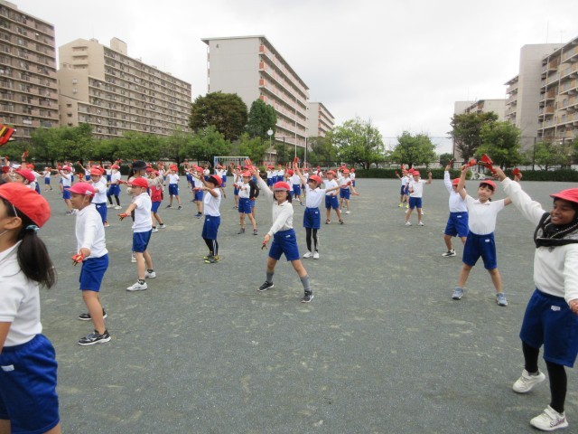 3年生、よっちょれ頑張っています。4年生の児童がとても丁寧に、分かりやすく教えてくれるので、日々楽しく取り組むことができ、成長することができています。合同練習だけではなく、放課に自主的に集まって練習する姿も見られました。日々みんなの成長とパワーを感じることができ、うれしく思います。運動会では、心を一つに、輝く笑顔で、全力パフォーマンスをお見せしましょう。