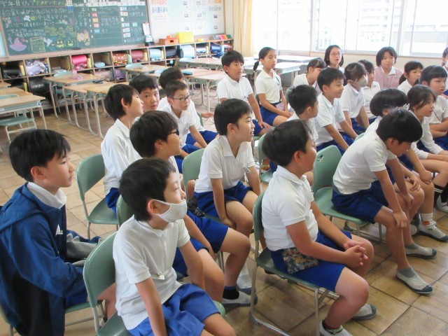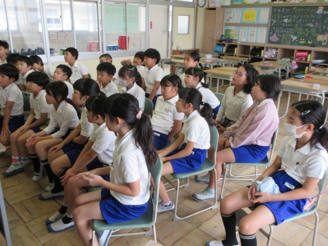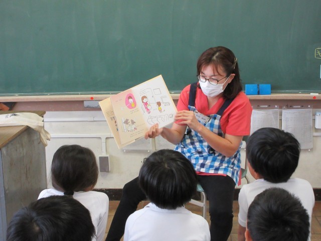 読み聞かせを行っていただきました。今回は、食事のマナーについてのお話などもあり、給食に生かしていこうと学校生活に置き換えて、真剣に、楽しく話を聞くことができました。
