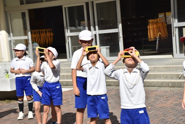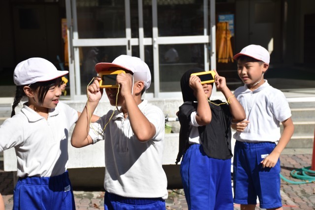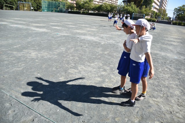理科では太陽とかげについて学んでいます。太陽の反対側に影ができることに気付き、太陽が動けば影のできる向きも変わるはずだと予想を立てました。