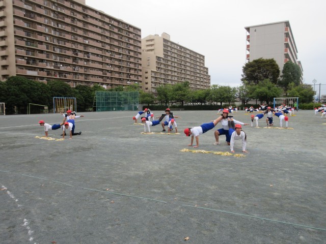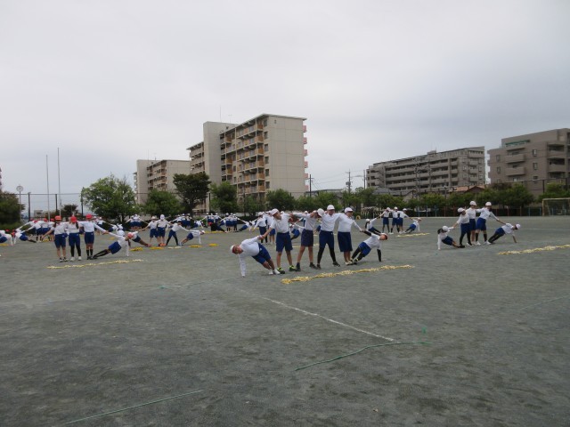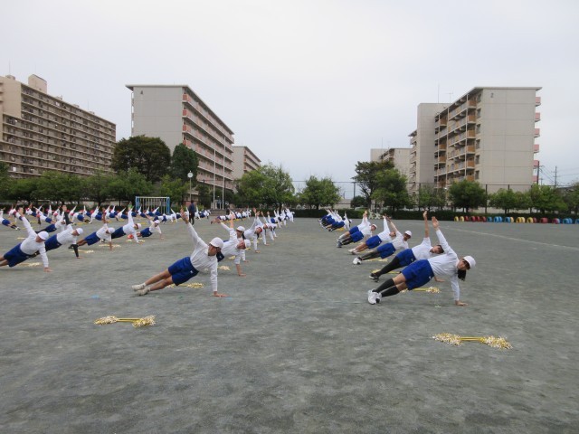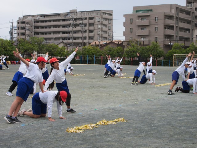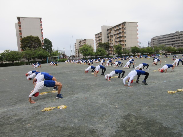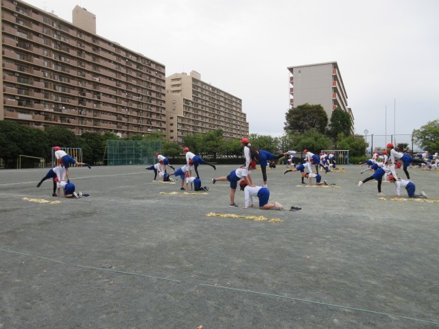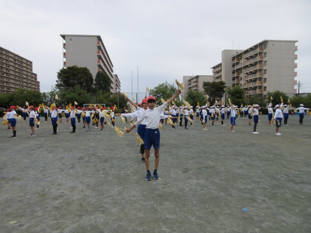 運動会に向けて合同練習をしました。一人技から五人技までの組み立てはきびきびと、後半のマツケンサンバⅡはあふれる笑顔で、メリハリをつけて演技します。当日をお楽しみに。