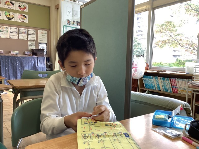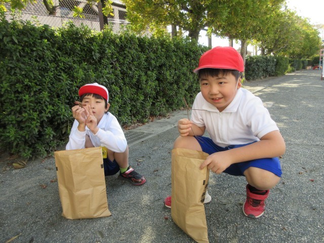 5年生は、手縫いやミシン縫いにチャレンジしています。安全に気を付けて、真剣に取り組んでいます。1年生は、秋見つけにチャレンジしています。どんぐり比べをして、大きさや形の違いに気付くことができました。