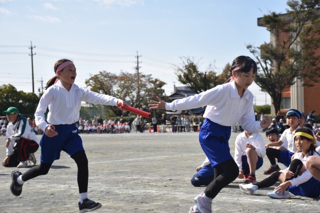 4年生は学級対抗リレーでした。授業や放課の時間にもバトンパスの練習をして本番に向けて少しでもタイムが縮むように頑張りました。運動会本番では全クラス新記録のタイムを残すことができました。心を一つにバトンをつなぐことができました。