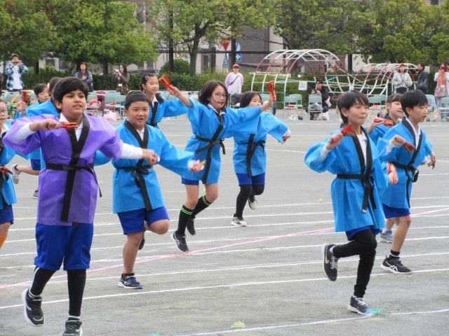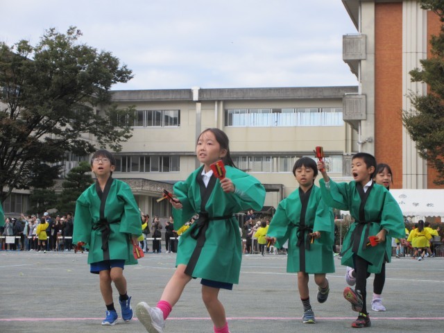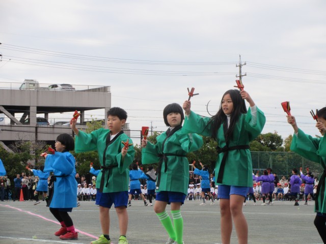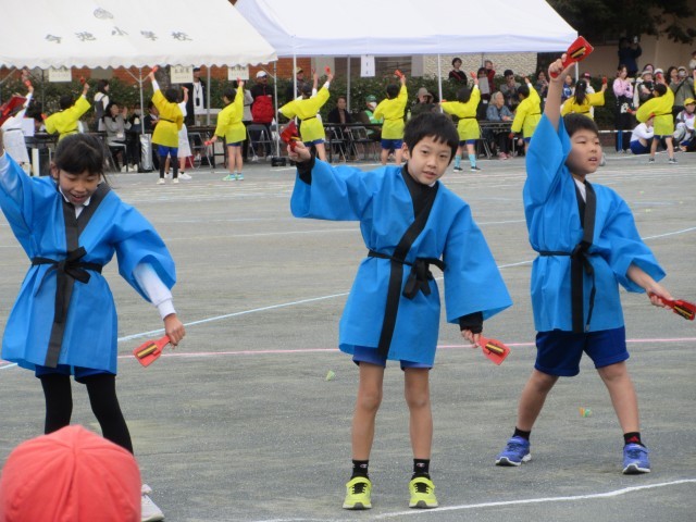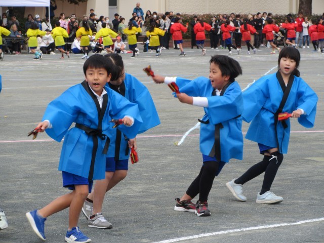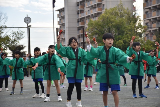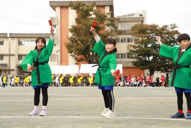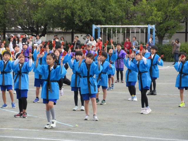 よっちょれでは、「輝く笑顔」「全力パフォーマンス」「心をひとつに」の三本柱を合言葉に練習を重ねてきました。本番では、3,4年生らしい元気な声が運動場に響き渡り、迫力のあるパフォーマンスを披露しました。