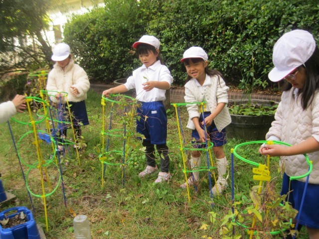 大きく育ったあさがおを、苦労しながら支柱からはずしました。