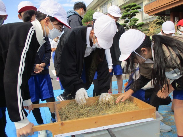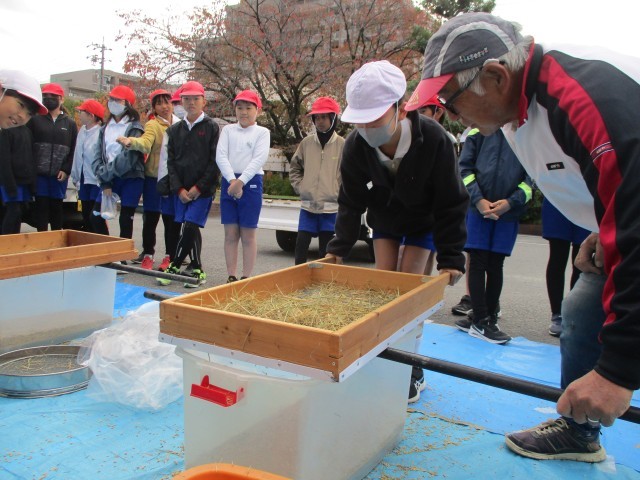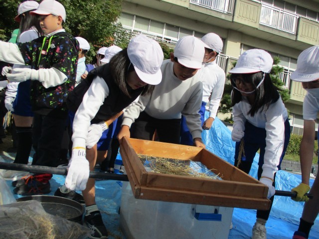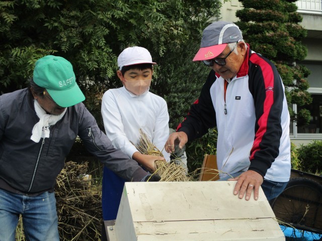 稲刈りをし、干していた稲の脱穀・精米をしました。