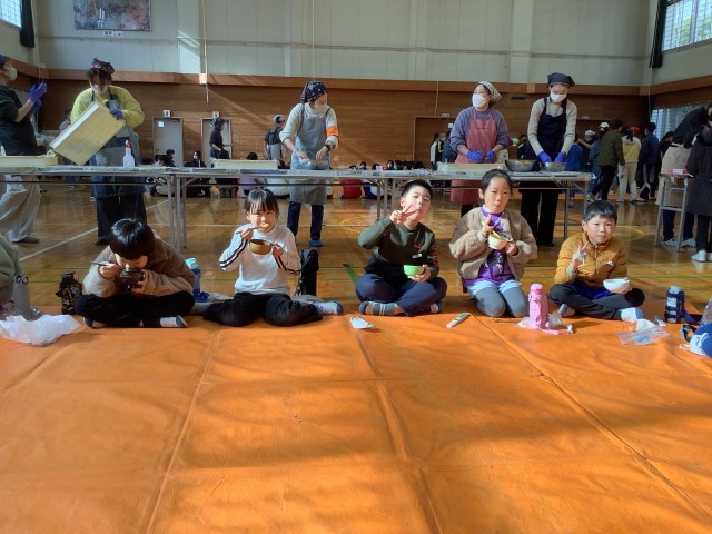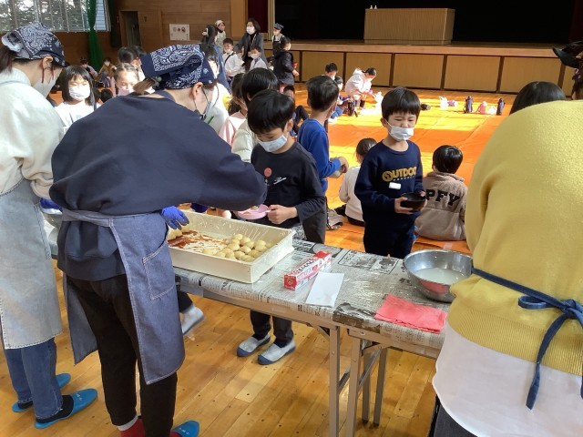 今日は、もちつきの会がありました。みんなで「よいしょ」とかけ声をかけて応援しました。つきたてのお餅は柔らかくておいしかったね。