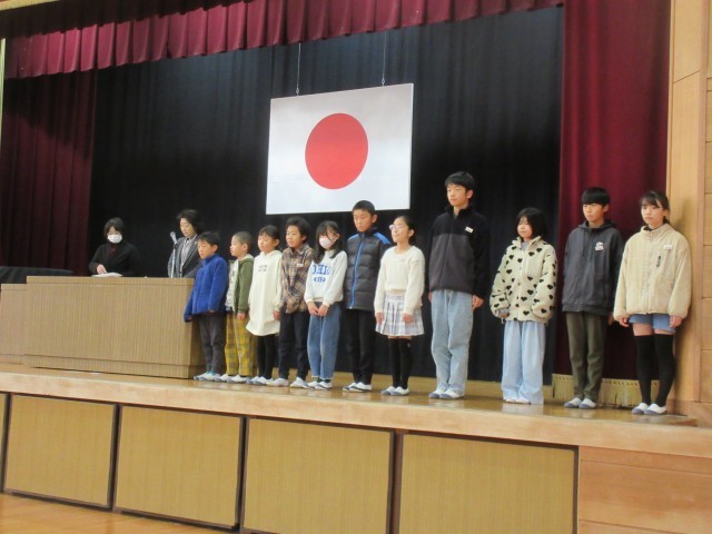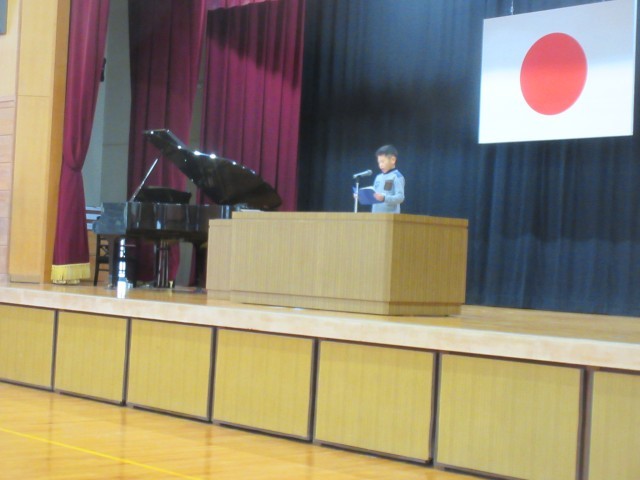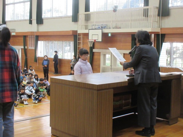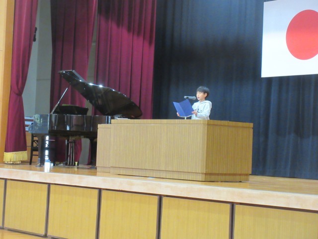 2学期の振り返りとして、児童の代表2名が話をしました。