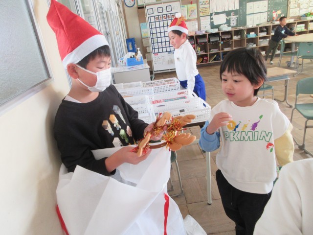 ゆうゆう5組では、クリスマスパーティーをしました。