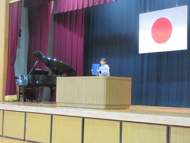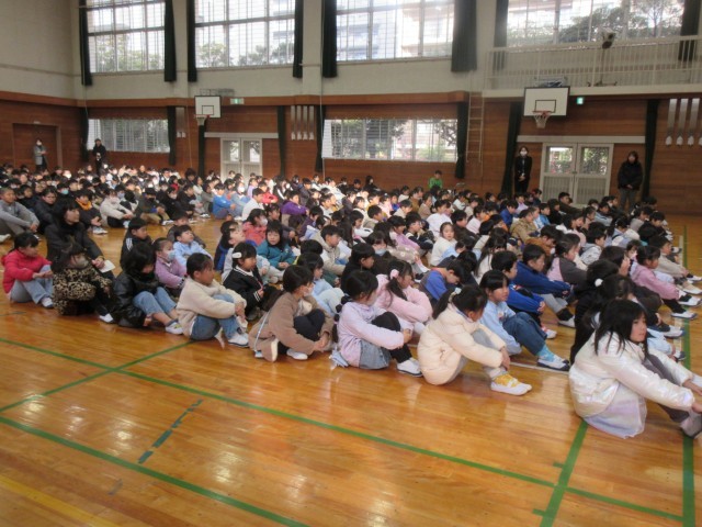 3学期の始業式、子どもたちはいつも通り、自分たちで式の雰囲気を作りながら体育館へ入りました。