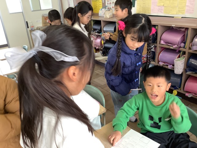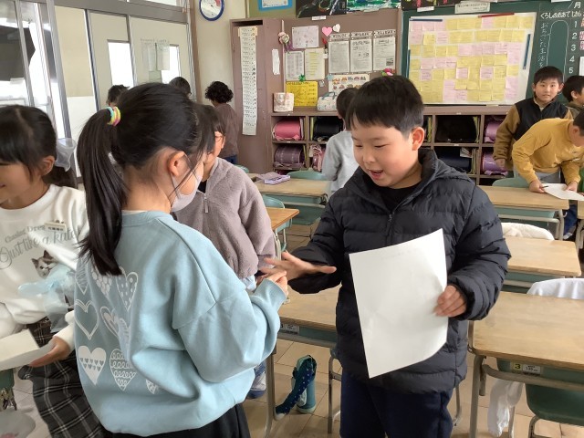 2年生の教室にも元気な声が戻ってきました。始業式では、姿勢よく話が聞けました。教室では、冬休みの思い出をジャンケンで話しながらビンゴゲームを楽しみました。新しい掃除分担も決まり、友達と相談しながら気持ちよく取り組めていました。