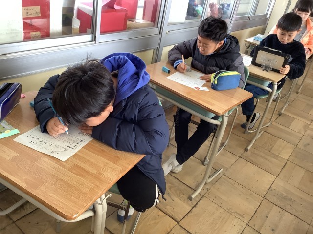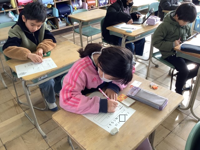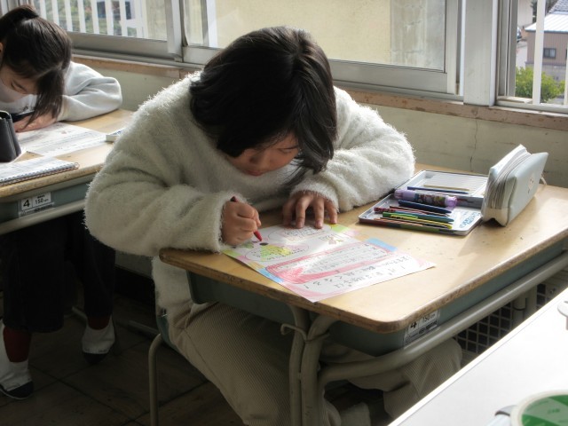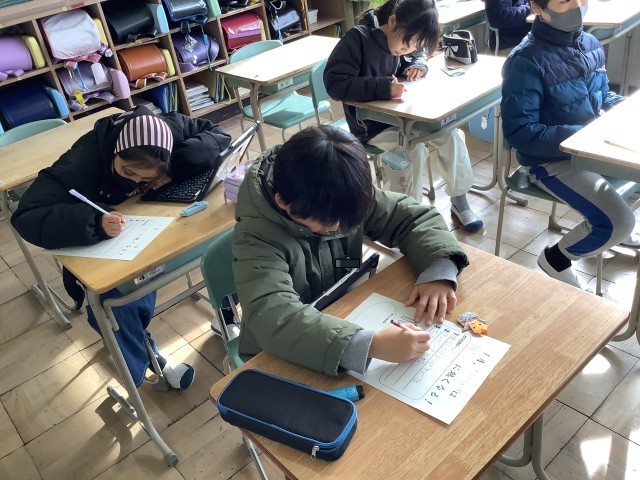学級活動で1月の月目標を考えました。今月自分はこんなことを頑張ろうと具体的に考える姿が見られました。また、今月から級訓の達成度についても考えるようにしました。4月、こんな学級にしたいと全員で考えた級訓。常にそこに立ち返り、過ごしてきました。3年生が終わるときに全員が級訓を達成することができたと言えるように、今足りないところを振り返り、意識しながら今後の生活を過ごしていきたいと思います。