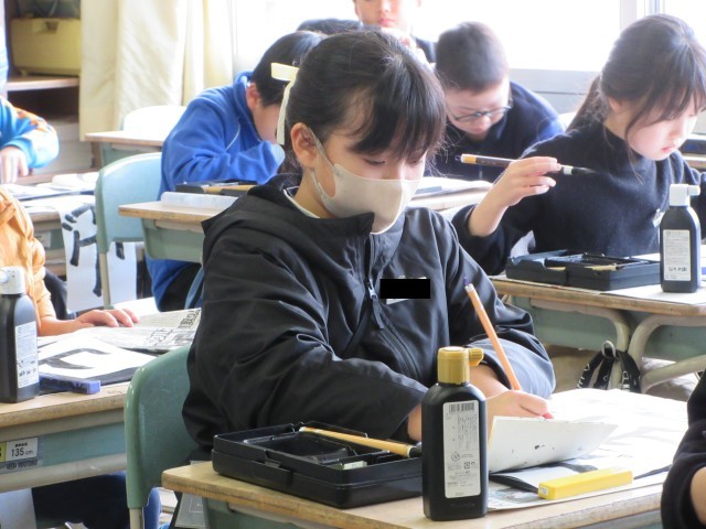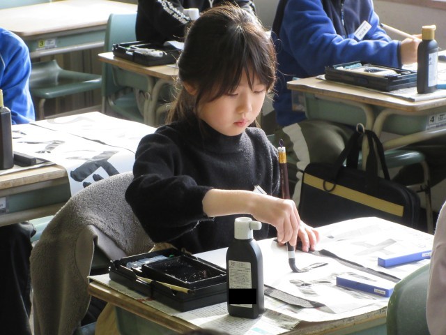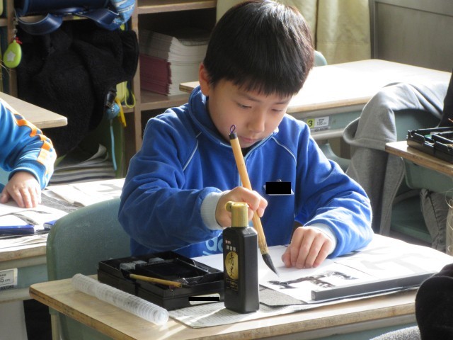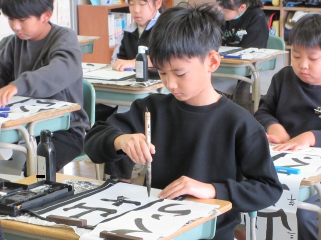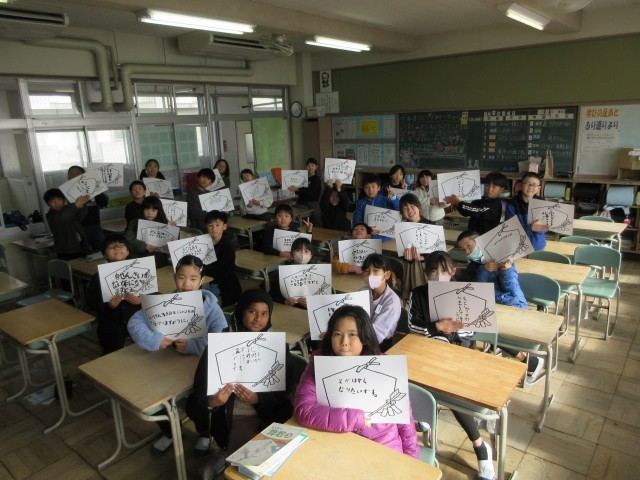 書き初め会をしました。気持ちを落ち着かせ、手本をよく見て、集中して取り組むことができました。最後に絵馬に見立てた画用紙に、今年の目標や願いを書きました。2026年もよい年になりますように。