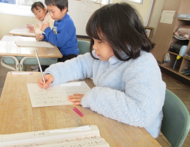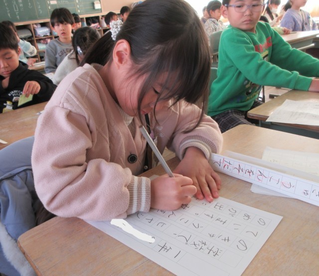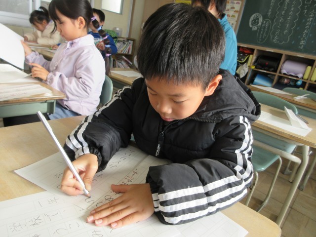 初めての書き初め会がありました。2学期の書写の授業や冬休みの宿題で練習してきた成果を発揮できるよう、心を落ち着かせて取り組みました。1文字ずつ、手本をよく見て書くことができました。校内作品展が楽しみですね。