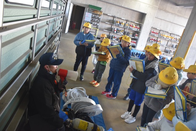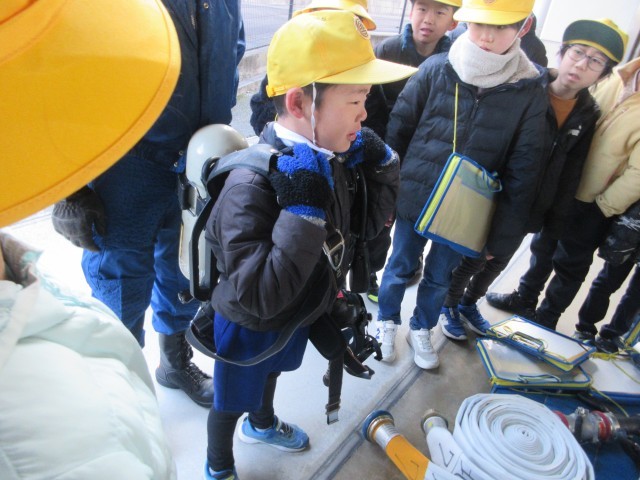 社会科の学習で消防署に出かけました。実際に消防士さんの話をきいたり、道具を見せてもらったり、消防車に乗せてもらったりしたことで、教科書では知ることのできない工夫を学びました。北分署の皆様、ありがとうございました。