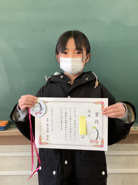 ボードゲームクラブでオセロ大会を開催し、優勝者と準優勝者を表彰しました。