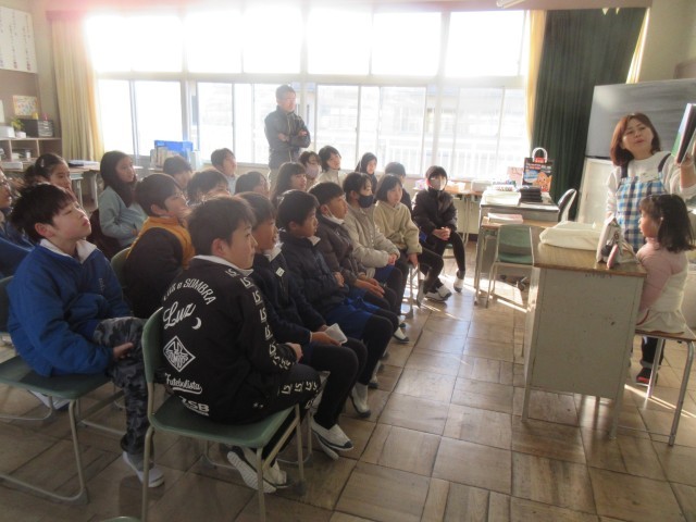 4・5年生のクラスで図書館ボランティアさんによる読み聞かせが行われました。