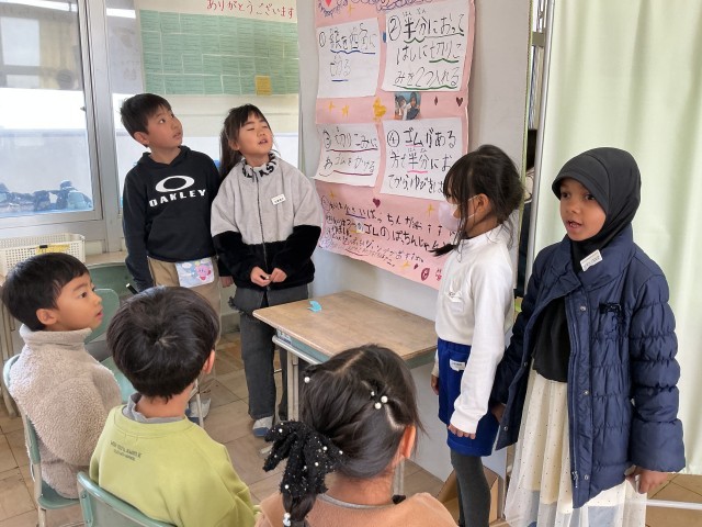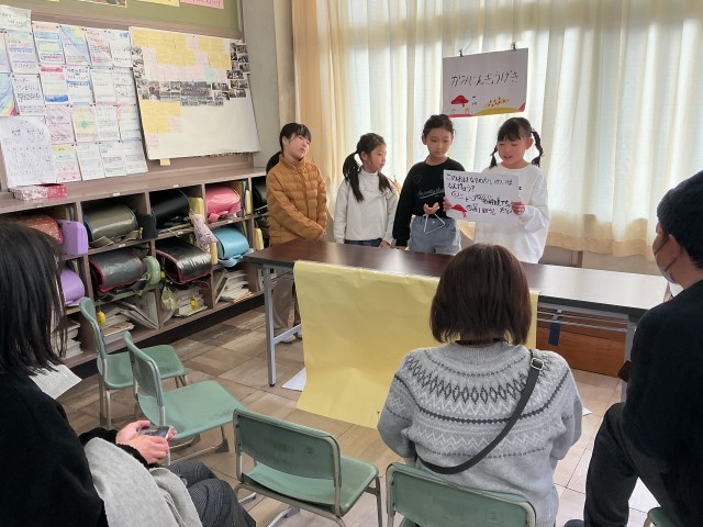 1月から学習フェスティバルの準備を友達とがんばってきました。この一年間の学びの「たからもの」を伝えたいと思い、自分たちで話し合って準備してきたことを、本番では大きな声で発表することができて、片付け後は「やりきった!」という気持ちが体からあふれ出ていました。お疲れ様でした!
