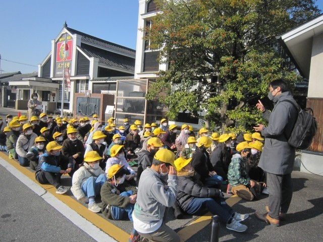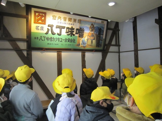 社会の学習として八丁味噌の工場見学に行きました。教科書で学習したことを実際に見て、味噌汁の試飲もさせていただきました。
