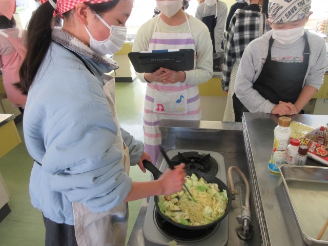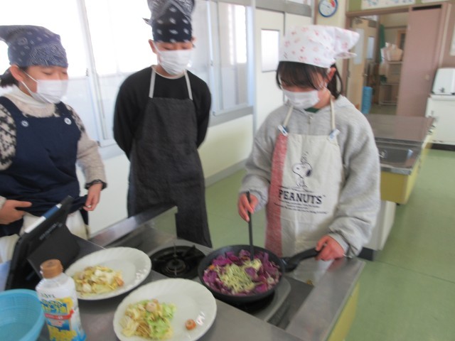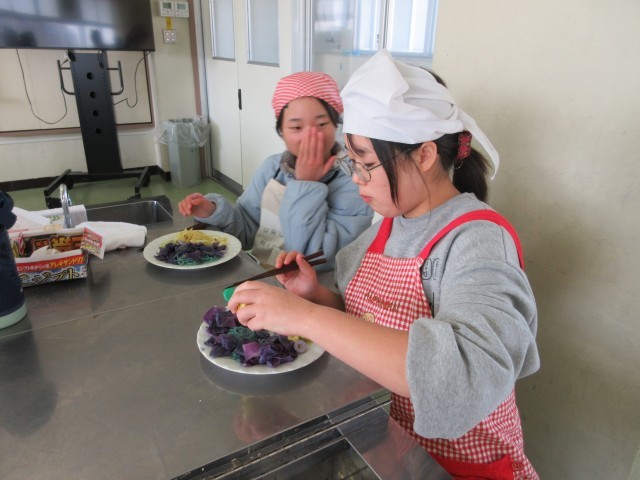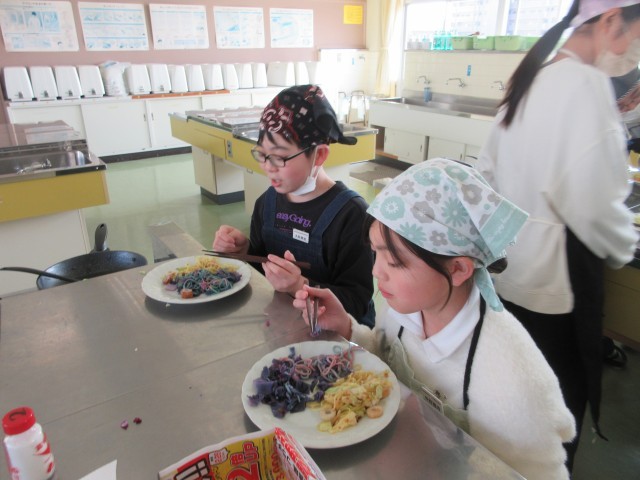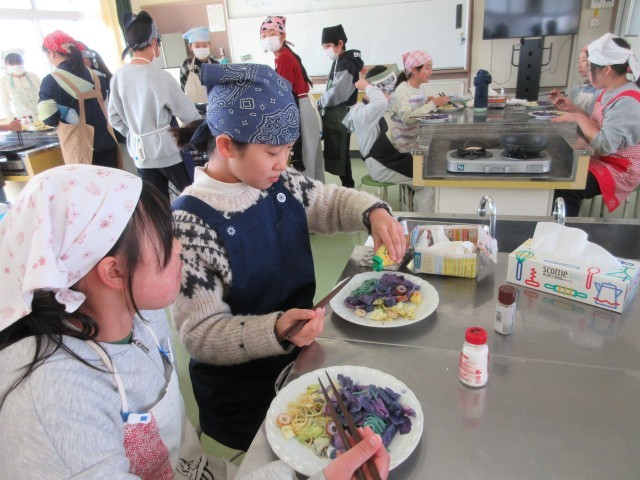 6年生 家庭科+理科 紫キャベツと焼きそば