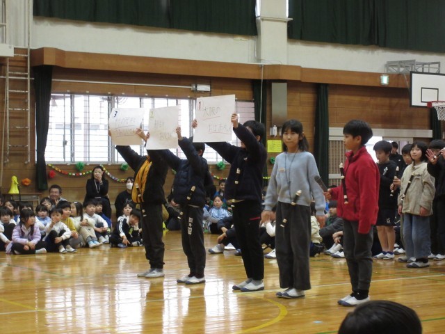 6年生に楽しんでもらうためにそれぞれのクラスでクイズを考えました。リコーダーでオーラリーを演奏したり、桜ボードの準備もがんばりました。