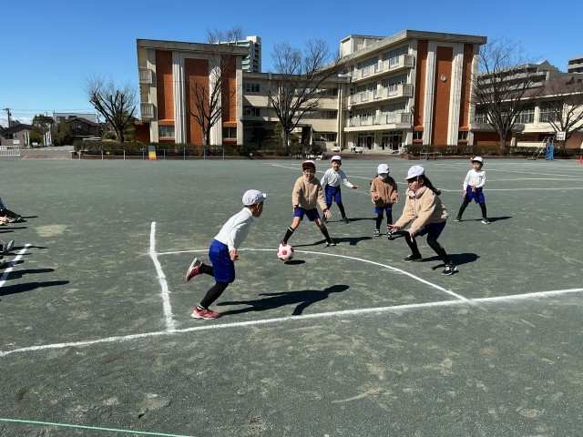ボールけりあそびとして、キックベースボールを学習してきました。今日は決勝戦!準決勝までは必ず2点以上とってきたチーム同士の対戦でした。サッカーが得意な子も、ボールけりの経験が少ない子も、楽しくゲームできました。