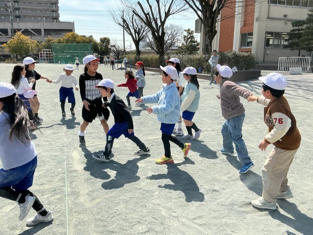 春の学校探検や夏・秋の遊びを一緒に楽しんだ1年生ペアと最後の遊び時間を取りました。ペアで一緒に走り回り、最後は2年生から折り紙のプレゼントを渡しました。たっぷり遊べて、みんな笑顔でお別れできました。