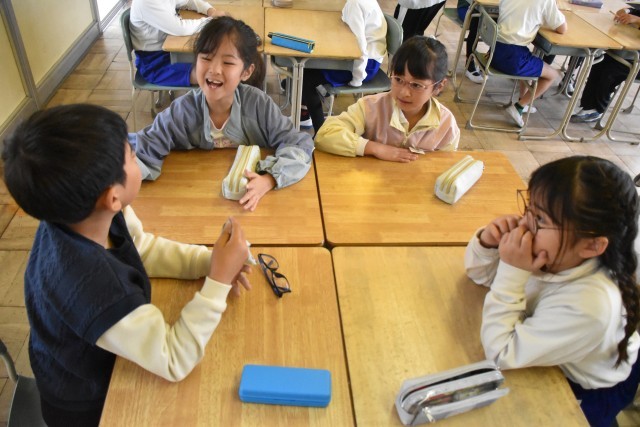 2組では、国語「あなたのこと、教えて」の学習をしました。友達の発表に対して、「どうして」、「どこで」「どんな」「だれと」などの言葉を使って質問しました。質問に答えてもらうともっとくわしく相手のことを知ることができました。前のめりで質問をしている子もいて、友達のことをもっと知りたいという気持ちが伝わってきました。