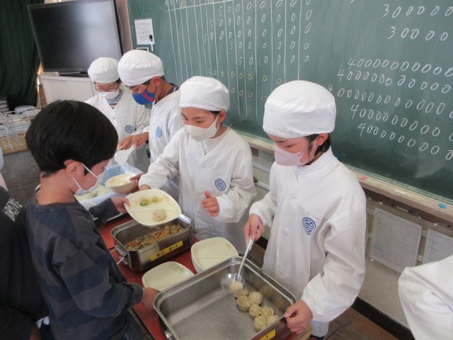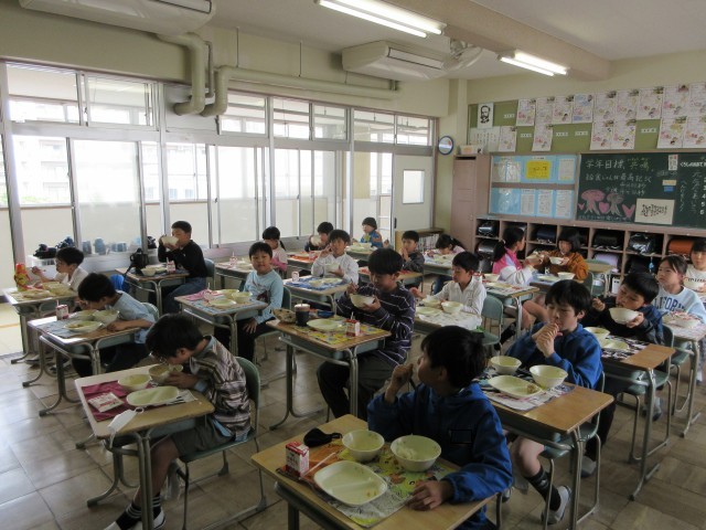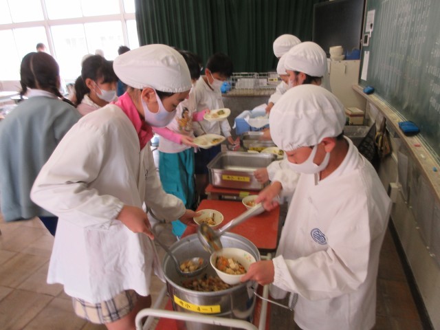 4年生、給食の準備も頑張っています。速く準備をするためにはみんなで協力することが大切です。給食の準備の時間を通して、みんなで協力する力や一人一人がクラスのために自分の役割を確実に行う力を高めることができています。みんなのおかげで素早く準備をすることができ、食べる時間も生み出すことができています。みんなの頑張り、協力に感謝です。